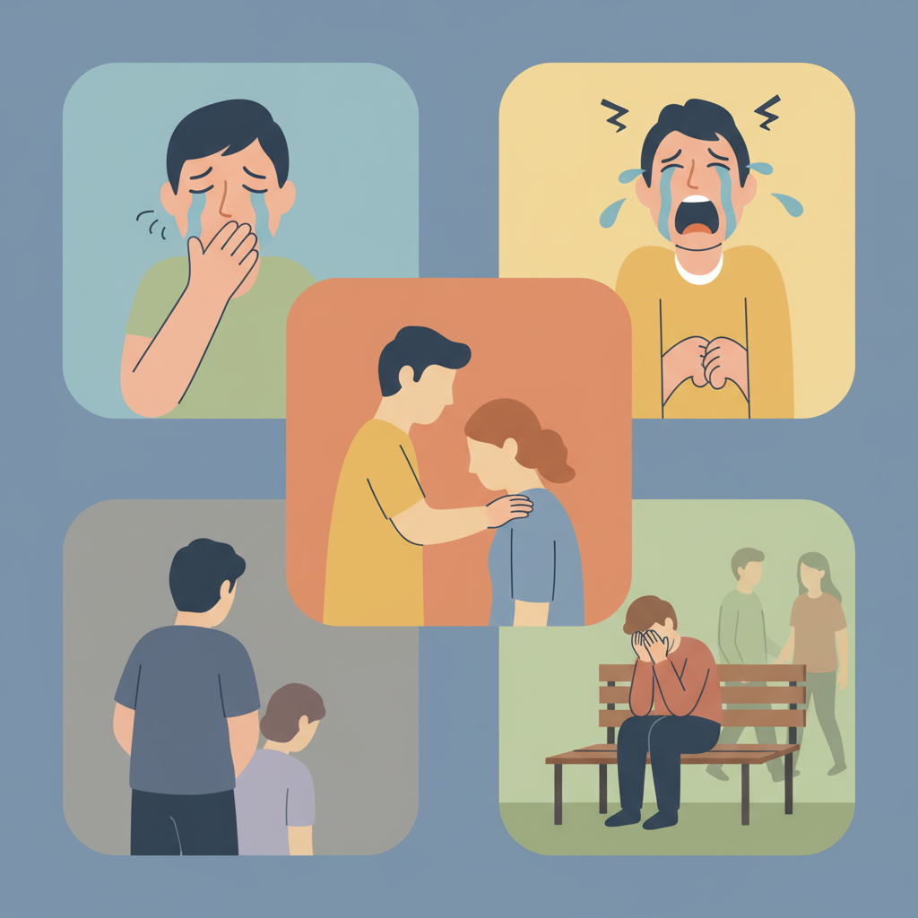 • البكاء في مكان عام: يعكس غالبًا وجود ضغط اجتماعي أو الخوف من حكم الآخرين على السمعة.