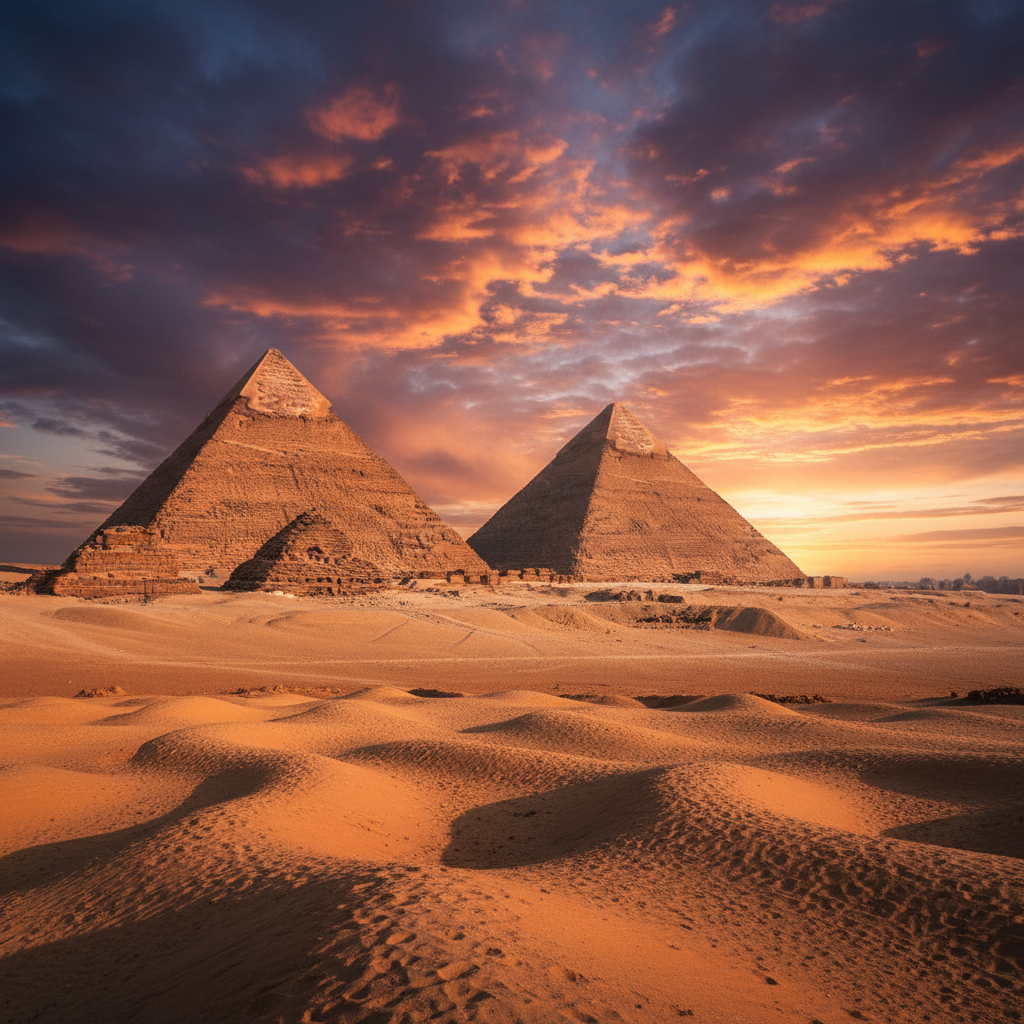 ترتبط رؤيا السفر إلى مصر برموزها الحضارية العريقة التي تُضفي على الحلم أبعادًا تفسيرية عميقة. فالأهرامات في المنام لا تمثل مجرد معلم أثري، بل قد ترمز إلى الطموحات الكبرى التي يسعى إليها الرائي، وقد يعكس صعودها حجم المشقة والتحديات في سبيل تحقيق هدف كبير، بينما يدل بناؤها على تأسيس عمل عظيم. أما نهر النيل في المنام، فيرتبط بالرزق والخير القادم مع هذا السفر؛ فالشرب منه منفعة وعبوره تجاوز للعقبات. وتتغير الدلالة بحسب تفاصيل الرؤيا وحال الرائي؛ فعلى سبيل المثال، عبور النيل الصافي قد يبشر برحلة مباركة وميسّرة، بينما قد ينذر عبوره وهو هائج بصعوبات تواجه الرائي في رحلته. هذه الرموز تحول الحلم من مجرد رحلة إلى استبصار لحال الرائي.